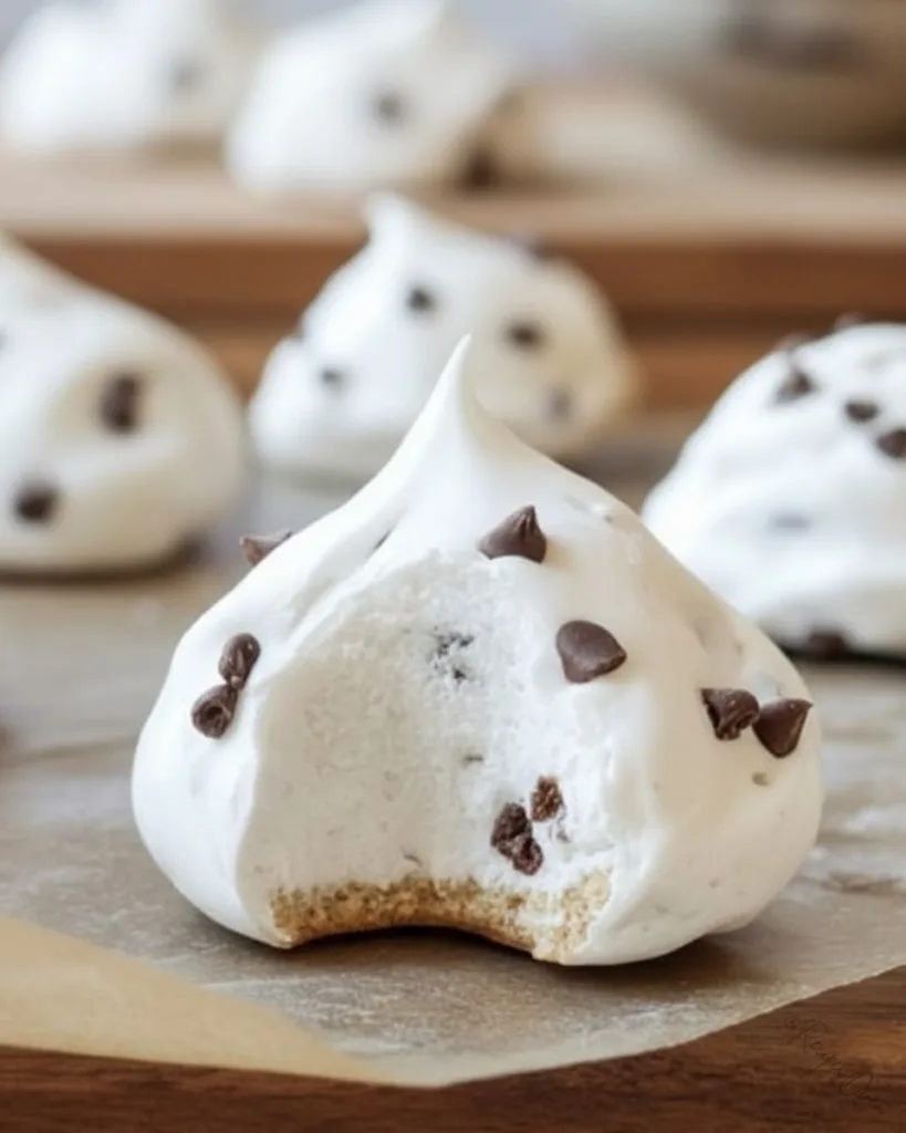 They taste like a cross between a toasted marshmallow and a cup of hot chocolate. The texture starts with a light, sugary crunch and finishes with a soft, chewy interior. The chocolate chips add a rich contrast to the sweet, airy meringue.