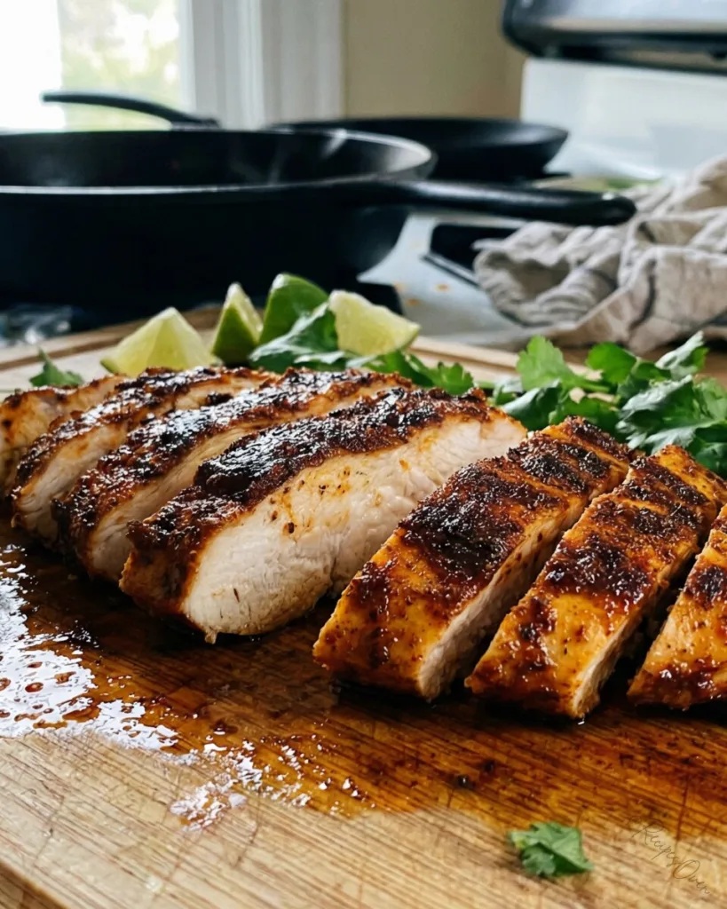 This juicy chicken is packed with bold spices and smoky flavor. It is a versatile protein that cooks quickly in a skillet, making it perfect for slicing into wraps, topping fresh salads, or serving as a zesty main course.