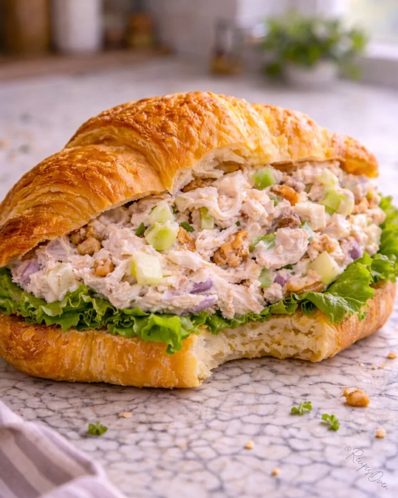 • To make this copycat recipe look incredibly appetizing for your blog photography and digital recipe boards, serve it scooped high on a buttery, flaky croissant with a piece of crisp green leaf lettuce. The contrast of colors and textures makes it truly irresistible!